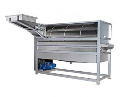 結(jié)構(gòu)特征及工作原理:該機(jī)主要有對壓輥三根、進(jìn)料斗、出汁斗、出皮斗、機(jī)架、傳動(dòng)等部分組成。工作時(shí)接通電源,將物料倒入進(jìn)料斗中,物料首先經(jīng)過第一和第二根壓輥的對壓擠破,然后進(jìn)入第一和第三壓輥進(jìn)行榨汁,皮從出皮斗排出,汁和部分肉從出汁斗排出,從而達(dá)到榨汁的目的;該設(shè)備除傳動(dòng)部位外其余均為不銹鋼制作。