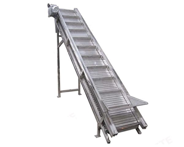 采用不銹鋼帶檔板作為載體,適用于各種食品行業的物料提升輸送等,可根據要求設計噴淋和集水裝置.